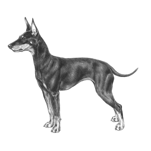 The English Toy Terrier (Black & Tan) originated in England during the 19th century, descending from larger black-and-tan terriers used for ratting and vermin control....FCI Group 3