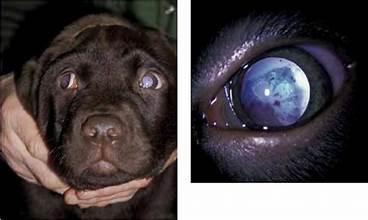 PRA-prcd is progressive, and late-onset, where retina cells are lost slowly. This initially causes problems seeing in dim light, usually around ages 3-5, though diagnosis by an ophthalmologist can be earlier, around 1-2 years. It can progress to complete blindness is some dogs, but not all cases. This disease is seen in many breeds and crosses.